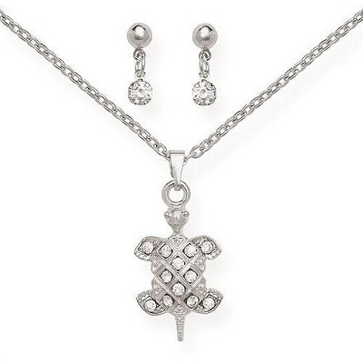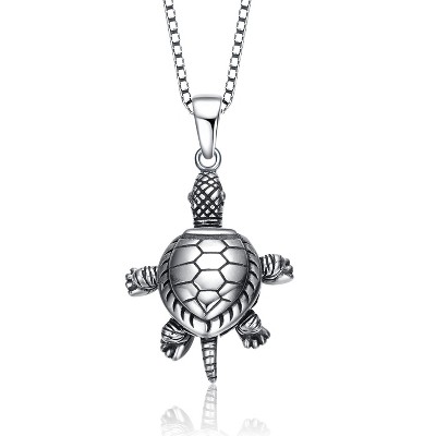 Guili Sterling Silver White Gold Plated Turtle Pendant Necklace, Featuring Clear Cubic Zirconia Sparkle, for a Chic and Nature-Inspired Look