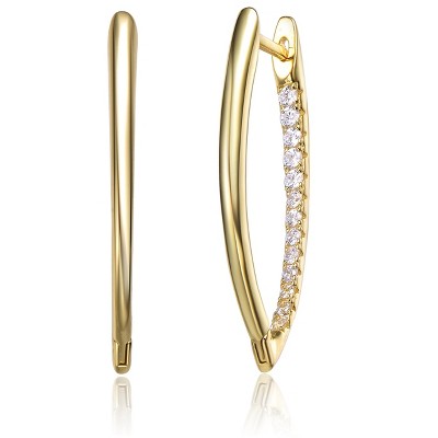 Guili Oblong Oval Raindrop Hoop Earrings in 14k Gold Plating with Cubic Zirconia, A Unique & Stylish Design for a Bold Yet Elegant Look