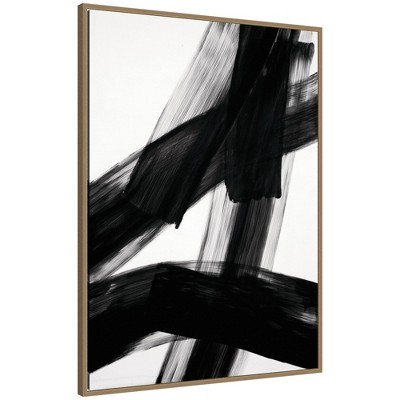 Kate and Laurel Black Mark No. 1 by Amy Lighthall Framed Canvas Wall Art Print, 28x38 Sylvie Dark Gold