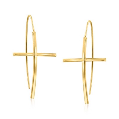 Ross-Simons 14kt Yellow Gold Curved Cross Drop Earrings