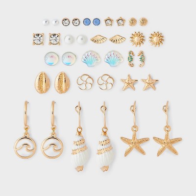 Seashell Earring 18pc Set - Wild Fable™ Gold