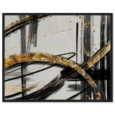 Stupell Industries Golden Rings and Circles Abstraction Framed Giclee Art, Black, 12" x 12"