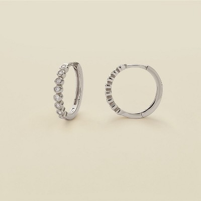 SHINE by Sterling Forever Sterling Silver Heart Cut Bezel Set Huggie Hoop Earrings