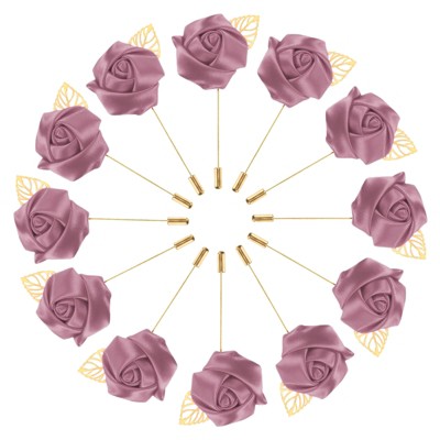Unique Bargains Mens Golden Leaf Rose Lapel Boutonnieres Pin for Wedding 12 Pcs