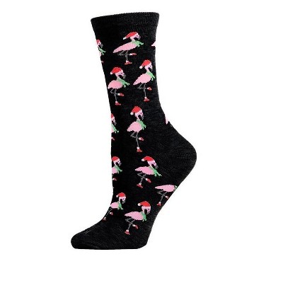 Memoi Women's Festive Flamingo Holiday Crew Socks