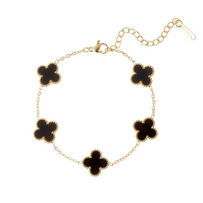 14K Gold Clover Bracelets for Women - Flower Four Leaf Clover Bracelet - Mother of Pearl & Onyx Gemstone Lucky Flower Design - Adjustable