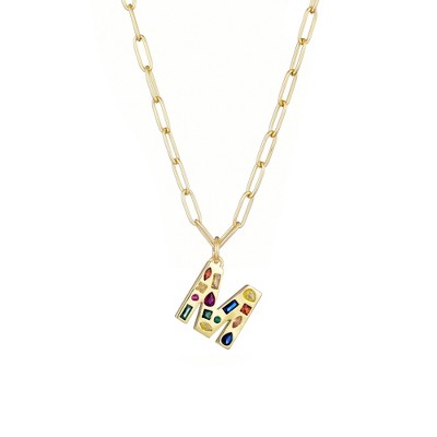 Adornia 14k Gold Plated Adjustable Layered Color Beads and Paperclip Chain Initial Necklace
