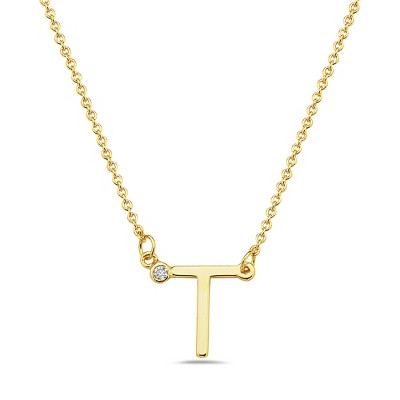Stylish 14k gold plated initial necklace adorned with sparkling cubic zirconia for a personalized and elegant touch.