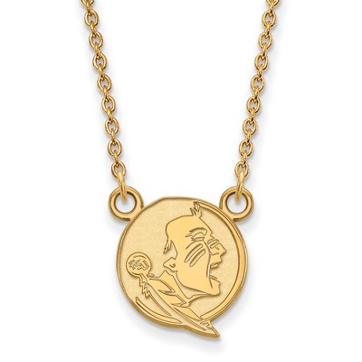Black Bow Jewelry 14k Yellow Gold Plated Sterling Silver Florida State Seminoles NCAA Small Mascot Necklace 18 Inch