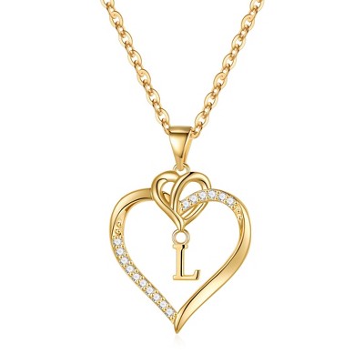 Turandoss Gold Haert Initial Necklace for Women Girls - Dainty 18K Gold Plated Letter Pendant Necklace, Cute Birthday Gifts for Women Girls, 16+2.5In