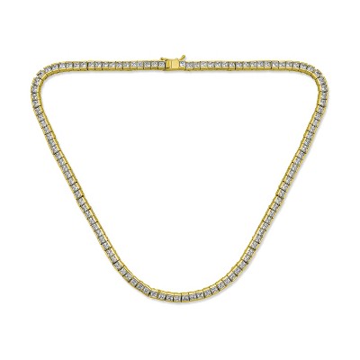 Bling Jewelry Classic Cubic Zirconia CZ Square Princess Cut Channel Set Tennis Necklace Collar Prom Gold Plated
