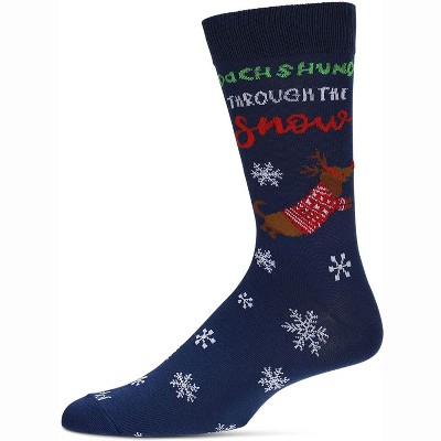 Memoi Men's Dachshund Through The Snow Holiday Crew Socks Navy 10-13