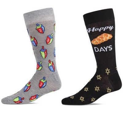 MeMoi Men's 2 Pair Pack Novelty Hanukkah Holiday Crew Socks