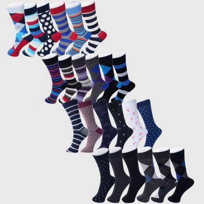 Alpine Swiss Mens Cotton 24 Pack Dress Socks Solid Ribbed Argyle Shoe Size 6-12