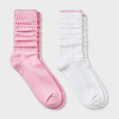 Women's 2pk Comfortwear Rib Texture Demi Crew Socks - Auden™ - White/Pink