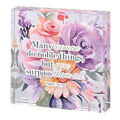 Dicksons Inspirational Tabletop Plaque Sign For Living Room 3 x 3 Glass Honor Her Floral