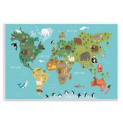 Stupell Industries Country Animals World Map Continents Wildlife Diagram Wall Plaque Art, 15" x 10"