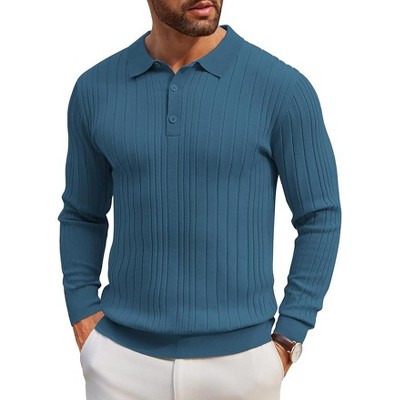 COOFANDY Knit Polo Shirts Long Sleeve Button Down Ribbed Polo Shirt Golf Shirts