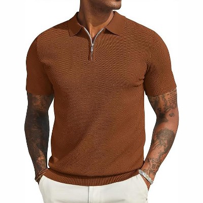 COOFANDY Mens Textured Knit Polo Shirts Zipper Polo Shirts Short Sleeve Casual Lightweight Golf Shirt