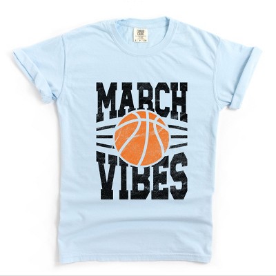 March Vibes Basketball Distressed - Women's Garment Dyed Graphic T-Shirt