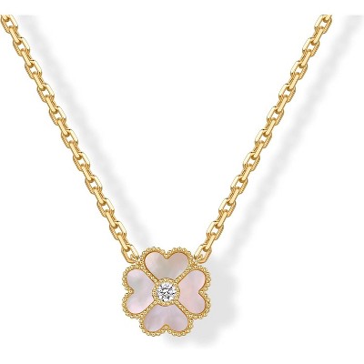 SmallRig 14K Gold Plated Clover Necklace for Women, Four Leaf Clover with Gemstone Accents