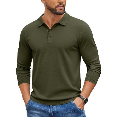 COOFANDY Mens Knit Polos Long Sleeve Casual Sweater Polos V Neck Collared Sweater Golf Polo Sweaters and Pullovers BLUE S