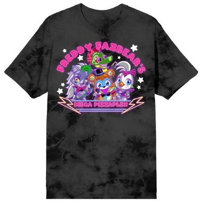 Five Nights At Freddy's Mega PizzaPlex Chibi Group Shot Women's Black Mineral Wash Crew Neck Short Sleeve T-shirt