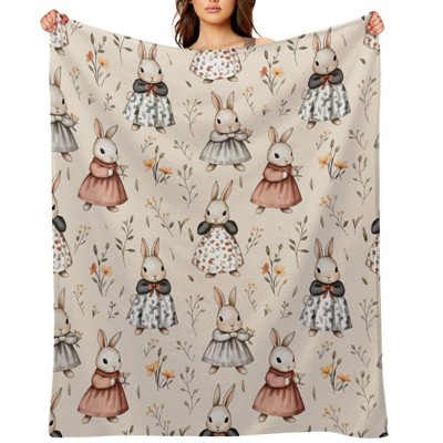 Bunny in Dresse Blanket Gifts for Kids Girls Women,Vintage Rabbit Pastel Floral Accents Throw Blankets,Soft Comfy Lightweight 40x50 inches