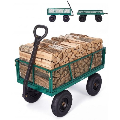 Garden Cart, Heavy Duty Steel Dolly – Capacity All-Terrain Wheels Removable Sides 180° Rotating Handle Utility Wagon for Outdoor Yard/Lawn
