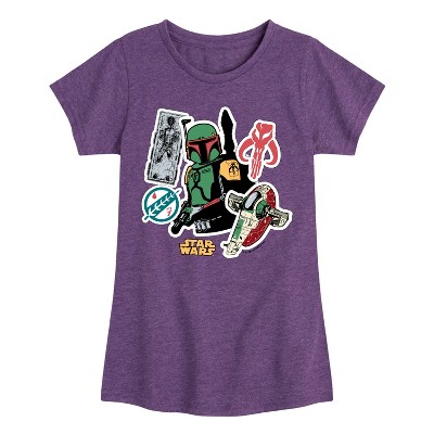 Girls' - Star Wars - Boba Fett Stickers Fitted Short Sleeve Graphic T-Shirt