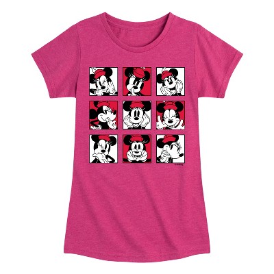 Girls' - Disney - Minnie Mouse Face Grid Fitted Short Sleeve Graphic T-Shirt