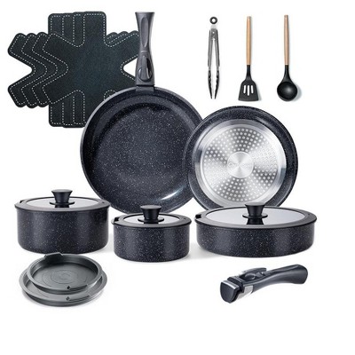 Aoibox 24-Piece Nonstick Cookware Set with Removable Handles, Induction Kitchen Pots and Pans, Dishwasher & Oven Safe, Healthy Granite Coating