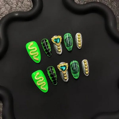 2026 Gothic charm press-on nails, Valentine's Day short almond-shaped press-on false nail set. Handmade false nail pieces