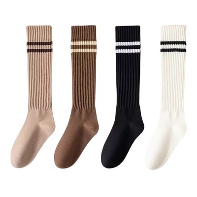 Anna-Kaci Women's 4-Pair Set Ribbed Knee-High Socks with Striped Detail Slim Fit Stretch Design for Casual Outfits