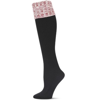 Memoi Slub Rib Turn Cuff Fleece Knee High Socks Black-Cabernet One Size