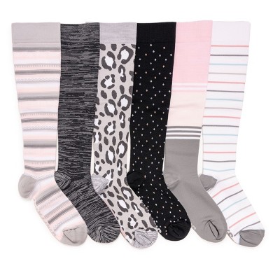 MUK LUKS Women's Nylon Compression Knee-High Socks, 6 Pair Pack, Pink/Grey, One Size Fits Most