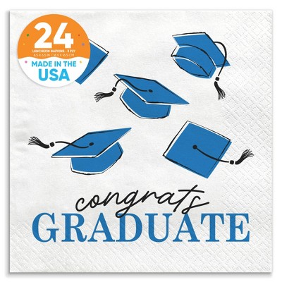 Big Dot of Happiness Blue Graduation Wrapping Paper, Class of 2026 Congrats Grad Party Gift Wrap Supplies, 24 in x 7 feet, 1 Roll