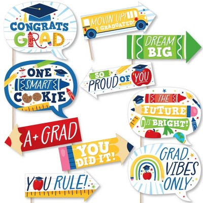 Big Dot of Happiness Funny Gold Graduation Party Photo Booth Props Kit - 10 Piece