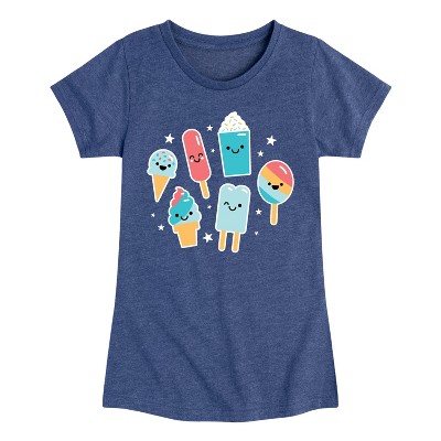 Girls' - Instant Message - Ice Cream Emojis Fitted Short Sleeve Graphic T-Shirt