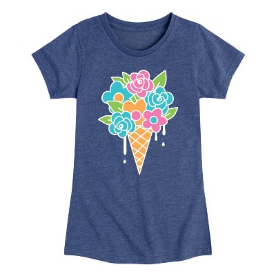 Girls' - Instant Message - Ice Cream Flowers Fitted Short Sleeve Graphic T-Shirt