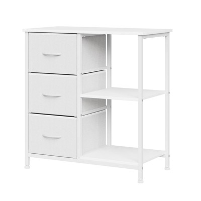Modern 3-Drawer File Cabinet with Printer Stand – Under Desk Organizer with 2 Open Storage Shelves – Space-Saving Filing Cabinet for Home Office