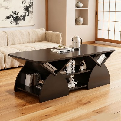 Gulches Rectangular MDF Indoor Coffee Table 2-Tier Modern Minimalist with Storage Safety Rounded Design 47 Inch Easy Assembly