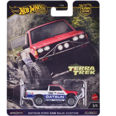 Datsun King Cab Baja Custom Pickup Truck #720 White and Blue with Red Hood "Terra Trek" Series Diecast Model Car by Hot Wheels