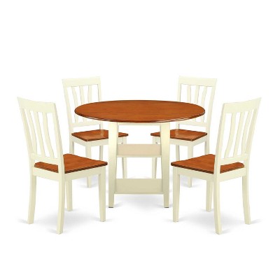HomeStock 5-Pc Buttermilk and Cherry Solid Wood Top - Round Dining Room Set - Seats-4