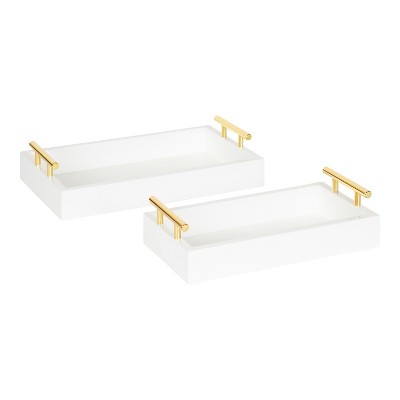HomeRoots 16" White Gold Rectangular Wood Handmade Tray With Handles