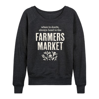 Women's - Instant Message - When in Doubt, Always Head to the Farmer's Market Lightweight French Terry Wide Neck Long Sleeve Graphic Shirt