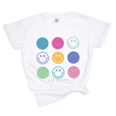 S.W.Smiley Stacked Smiley Faces - Women's Garment Dyed Graphic T-Shirt