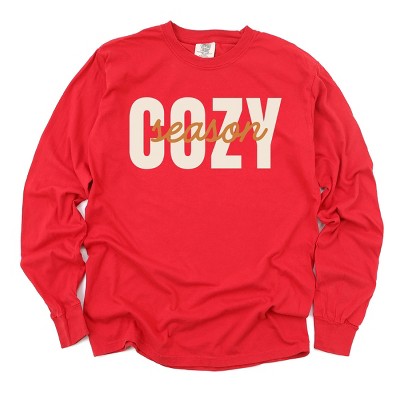 Cozy Season Layered Cursive - Women's Garment Dyed Long Sleeve Graphic T-Shirt