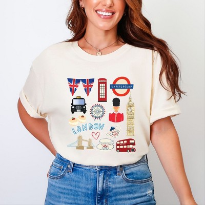 London Collage Watercolor - Women's Garment Dyed Graphic T-Shirt