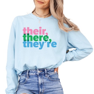 Their, There, They're Colorful - Women's Garment Dyed Long Sleeve Graphic T-Shirt